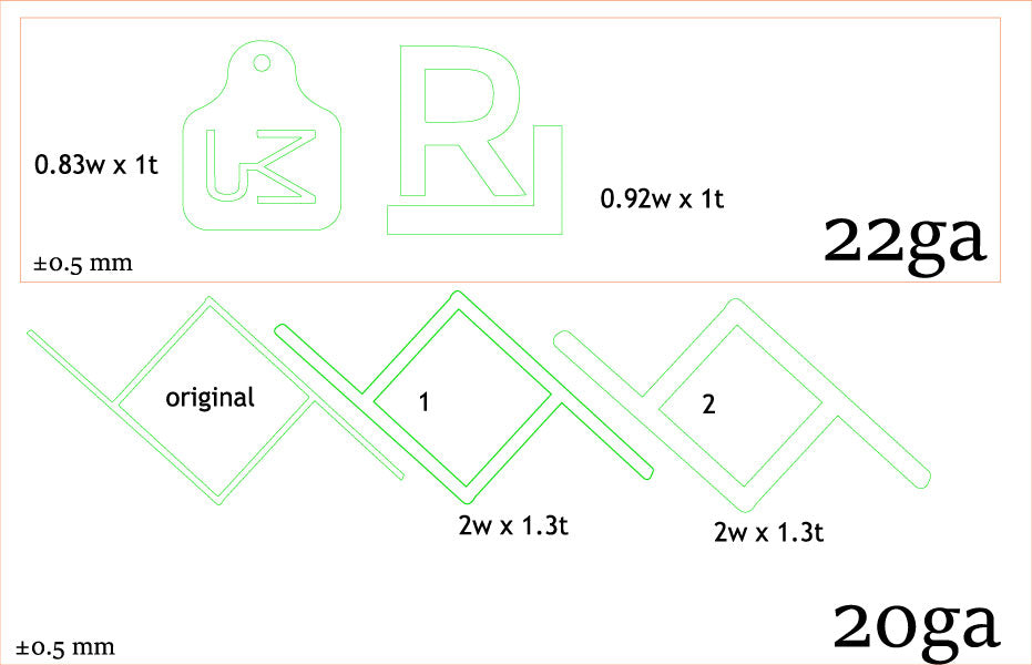 1in 22ga pieces ( brand and cowtag) $17/piece